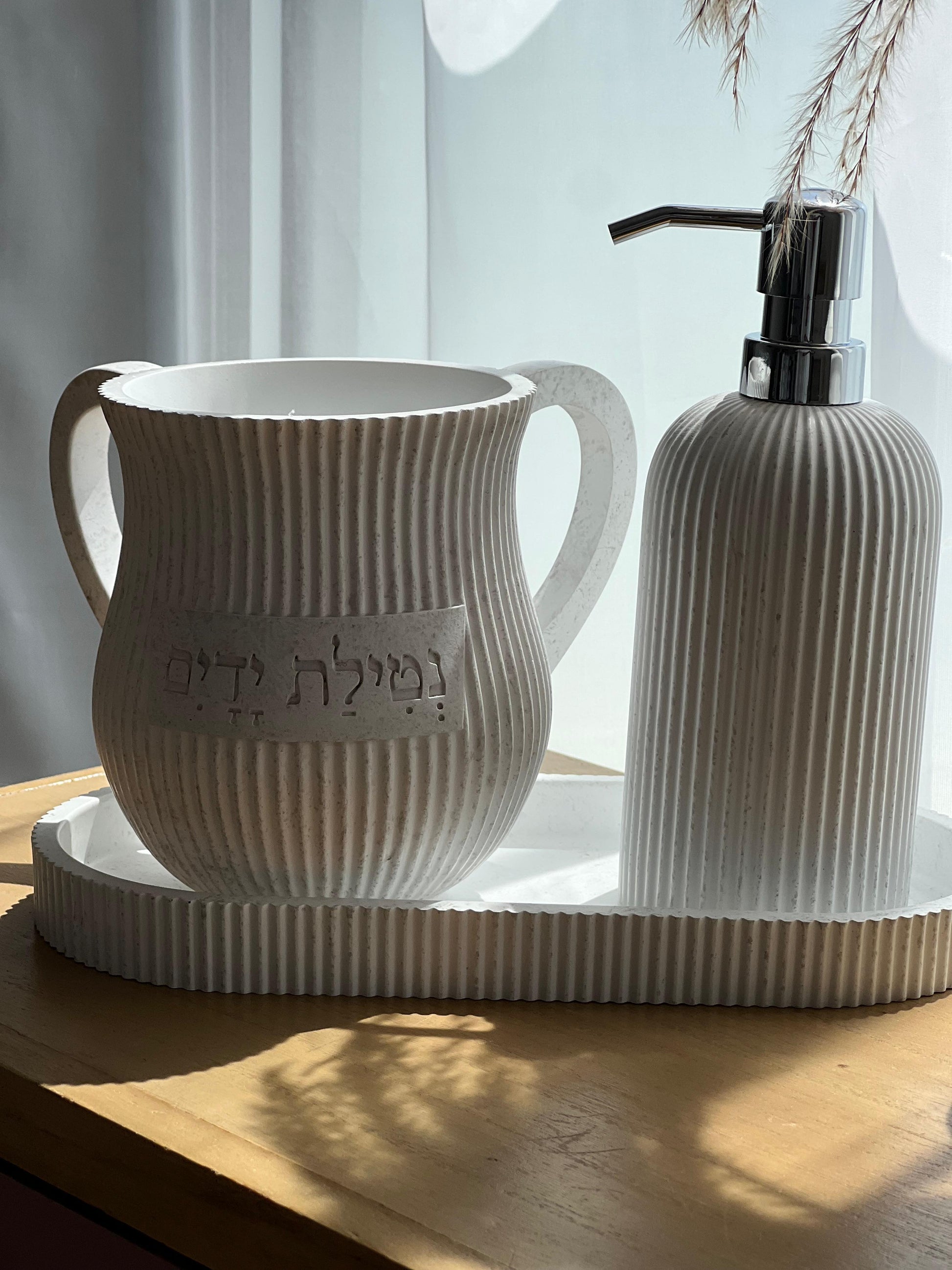 סט סבונייה עם נטלה מפוליריזן מהודר - כולל מגש לבן